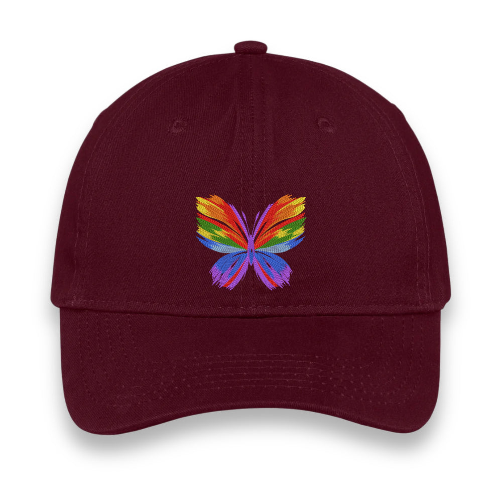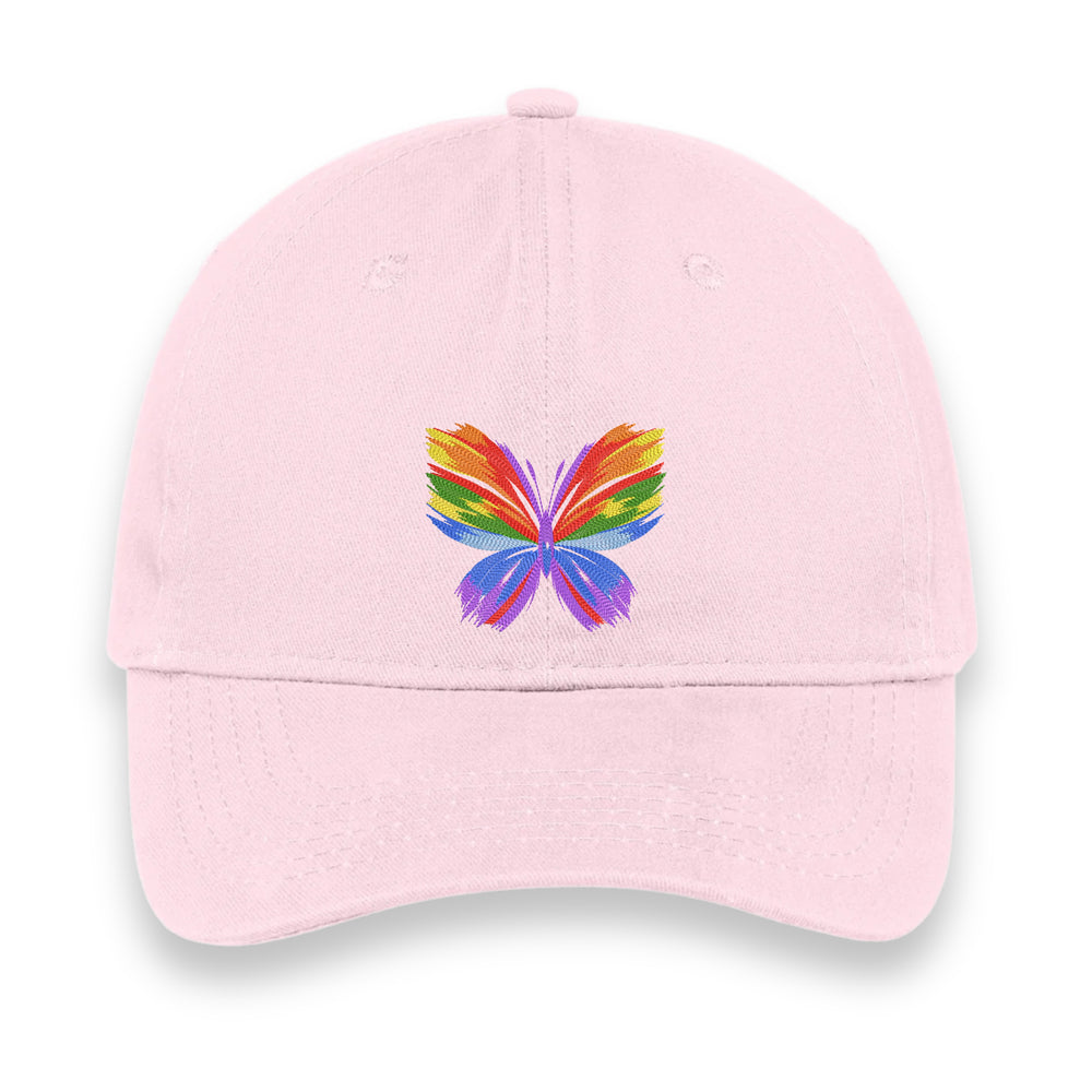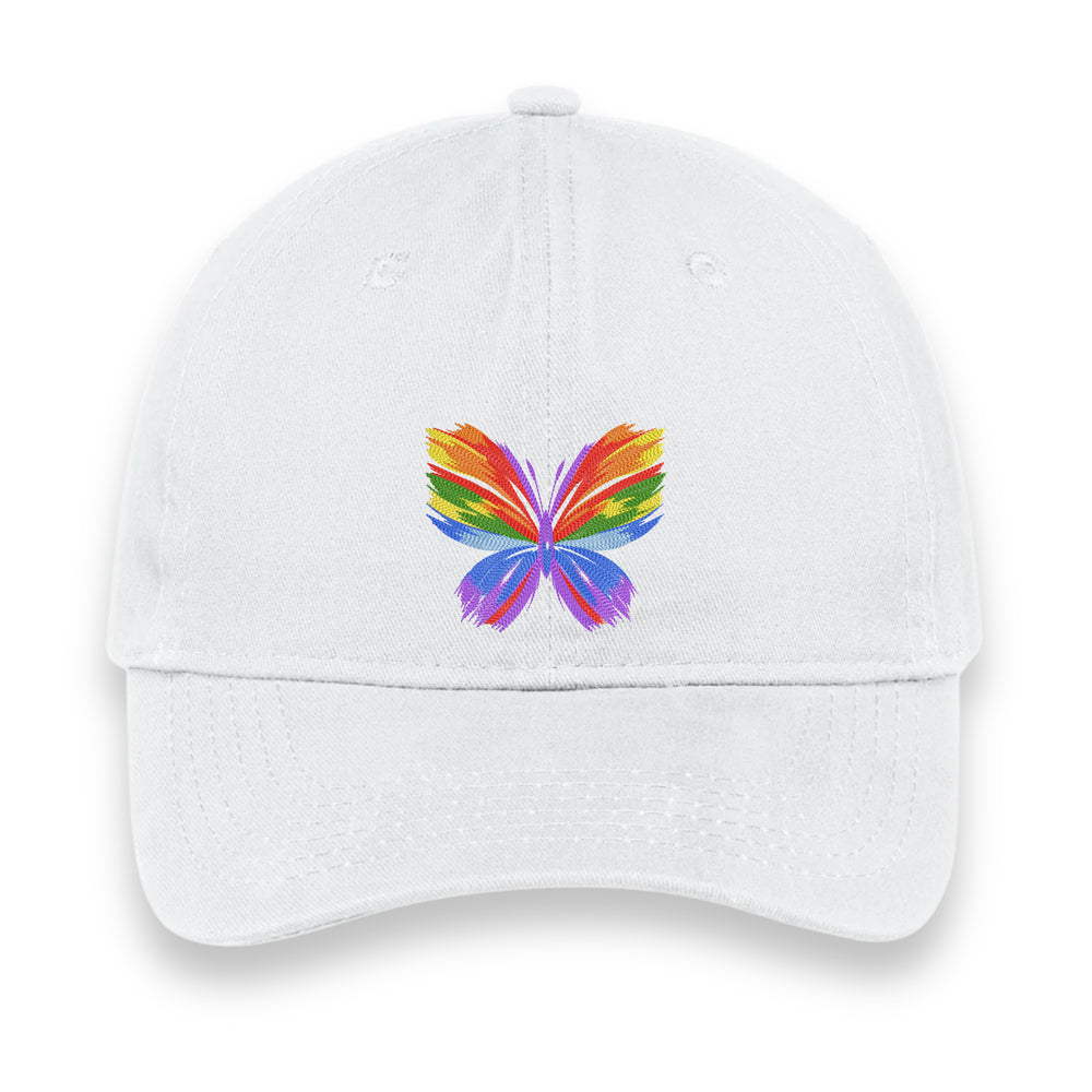 Rainbow Butterfly Embroidered Hat, Colorful Pride Baseball Cap, Whimsical Nature-Inspired Unisex Gift, Summer Aesthetic Cap