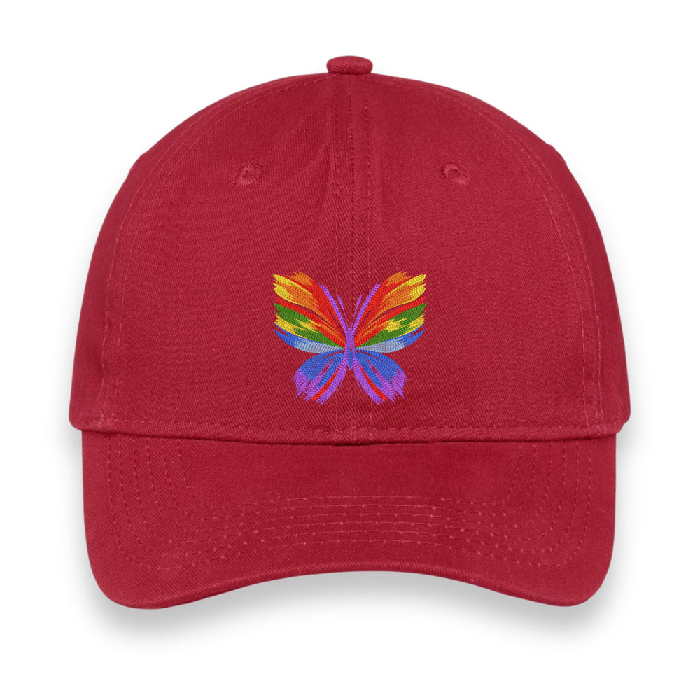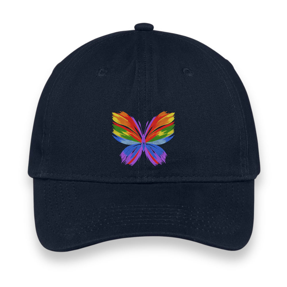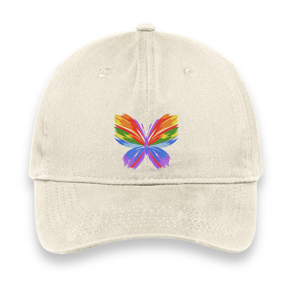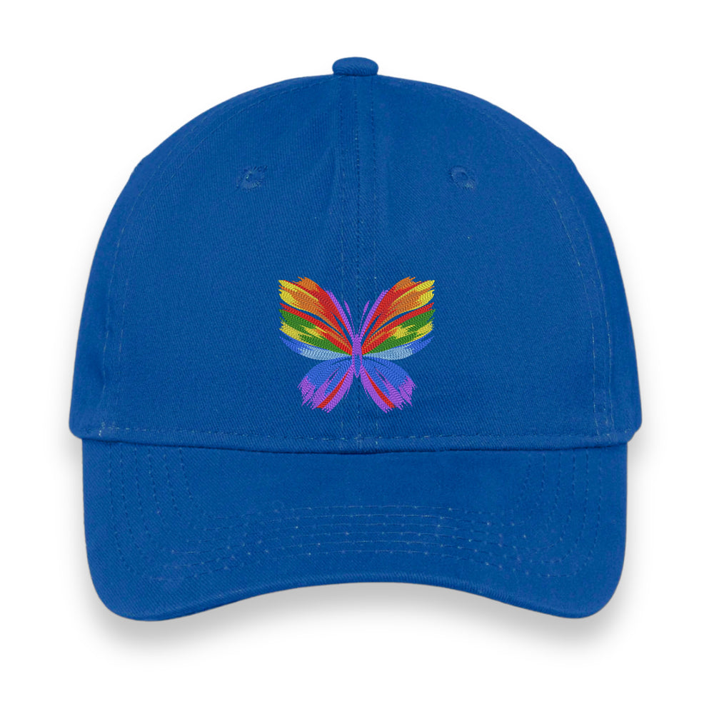 Rainbow Butterfly Embroidered Hat, Colorful Pride Baseball Cap, Whimsical Nature-Inspired Unisex Gift, Summer Aesthetic Cap